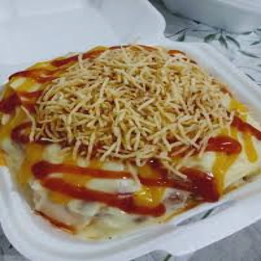 Carne, mussarela, ovo, tomate, alface, batata palha e milho